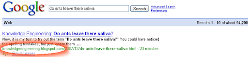 What is the significance of ranking #1 in Google for a search "Do ants leave there saliva"? Nobody is going to search for that phrase. Right? Yes, that's true. Nobody is going to come to my blog searching for such kind of phrase odd with misspelled words.